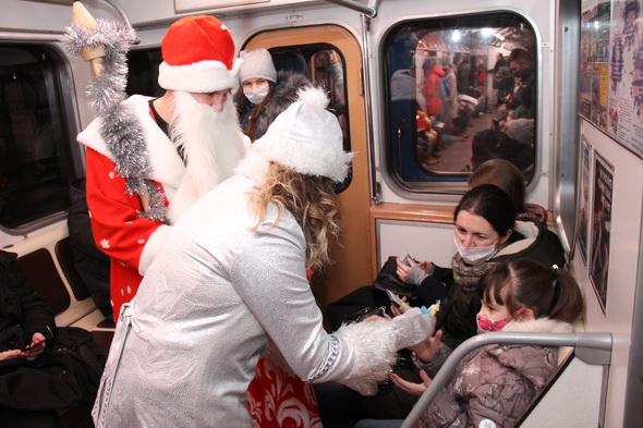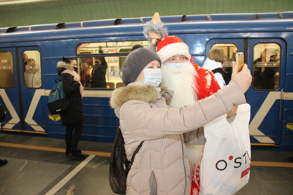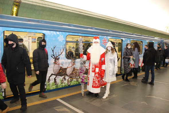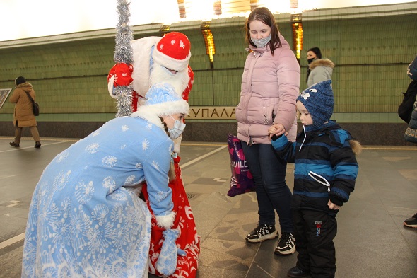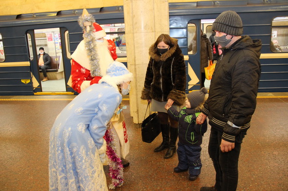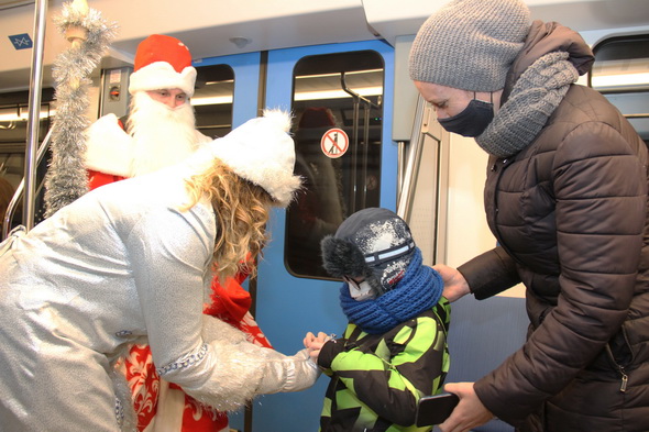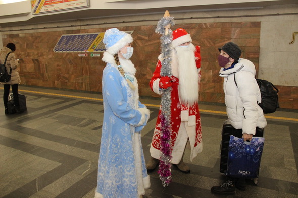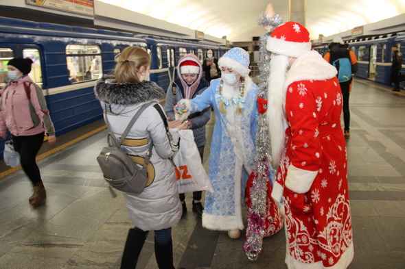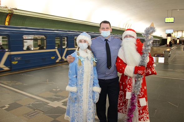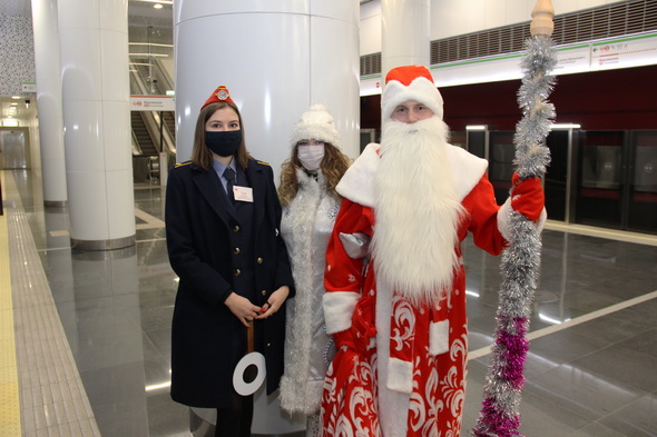 Снегурочками на это волшебное время стали Светлана Андронова и Светлана Дроздова, а в костюмы Деда Мороза облачились Алексей Данилов и Дмитрий Губанов. Действие развернулось в вестибюлях, на платформах станций и внутри вагонов. В том числе, с символикой нового 2021 года, брендированных метрополитеном. В декабре 2020 года такие яркие, красивые вагоны появились в середине двух составов, курсирующих на первой и второй ветках метро.