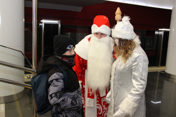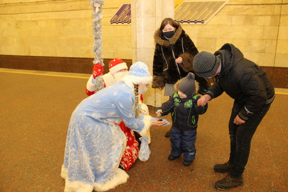 Сказочные персонажи проследовали по трем линиям метро, весело общались с попутчиками. Особое внимание Дед Мороз и Снегурочка уделили самым маленьким пассажирам, которые с удовольствием читали им стихи и пели песенки про Новый год. И, конечно же, за это ребята были награждены сладостями.