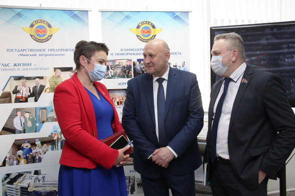 Главе Администрации Московского района Татьяне Колядко, и сопровождавшим ее должностным лицам, выставочную экспозицию подземки представлял пресс-секретарь Минского метрополитена Андрей Дроб. Он рассказал о многогранной информационной деятельности предприятия, привел примеры передовых форм работы, направленной на укрепление позитивного имиджа подземки в обществе.