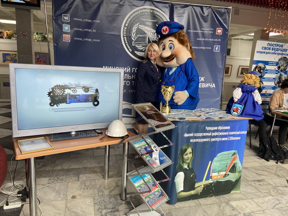 Сегодня в железнодорожном колледже проходят обучение молодые люди по специальности «Машинист электропоезда метрополитена. Слесарь по ремонту подвижного состава». В рамках презентационной программы учащимися этого учреждения образования была представлена выставка профориентационной направленности, а также выступление агитбригады по профессиям железнодорожного профиля.