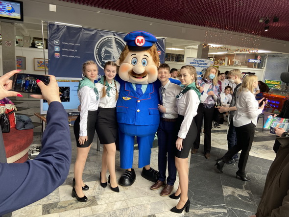 С целью привлечения внимания к экспозиции колледжа, в мероприятии принял участие наш замечательный персонаж Метрович. В этот день его образ примерил на себя электромеханик электромеханической службы Алексей Пестрак. А организовала этот вояж Метровича и сопровождала его в субботний день воспитатель общежития №1 Наталья Шеко.