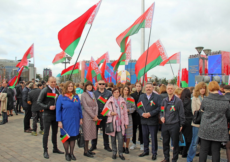 8 мая группа сотрудников Минского метрополитена приняла участие в торжественном ритуале чествования государственных символов, который состоялся на площади Государственного флага в белорусской столице.
