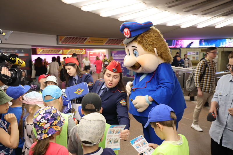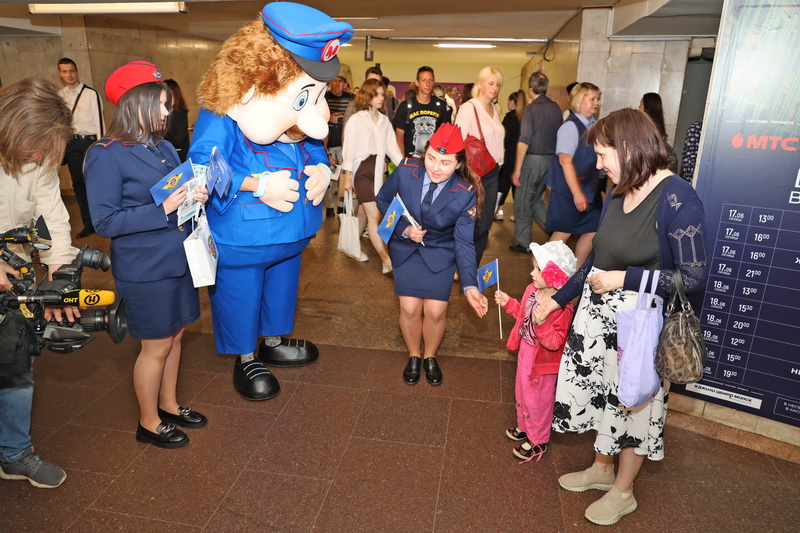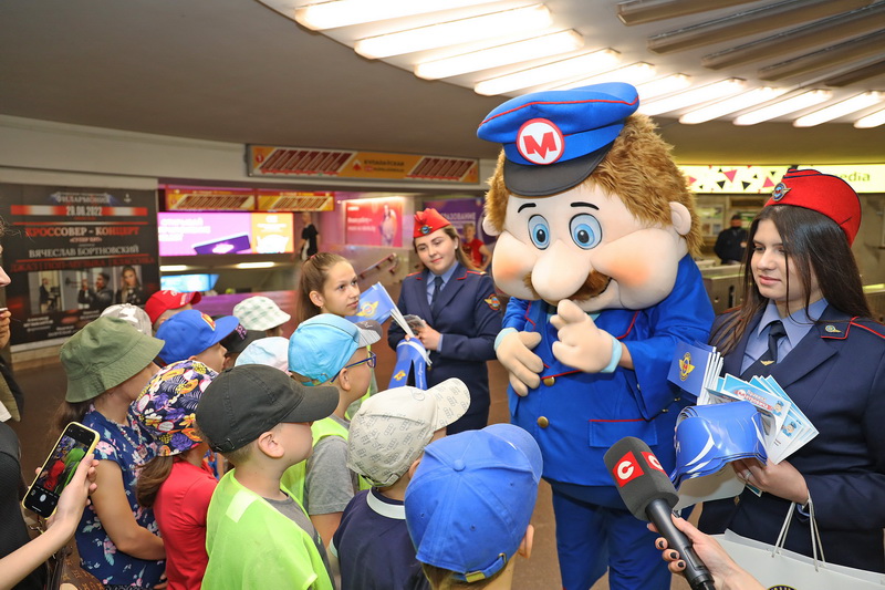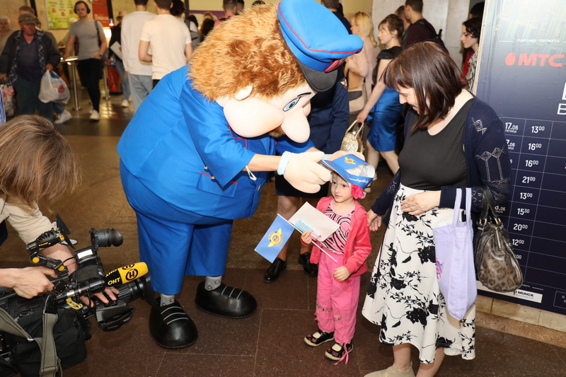 8 июня на станции метро «Октябрьская» анимационный персонаж Метрович (двухметровая двигающаяся ростовая кукла) и его помощники (сотрудники метро в форме) провели викторину на знание детьми и подростками правил безопасного поведения в метро. Дети получали красочные листовки с основными правилами поведения, сувениры, сладкие призы и с удовольствием фотографировались с добродушным Метровичем.