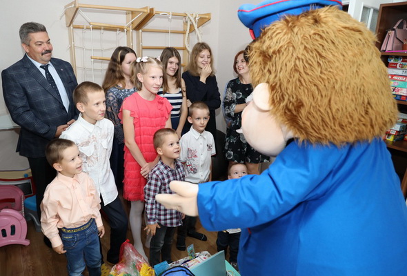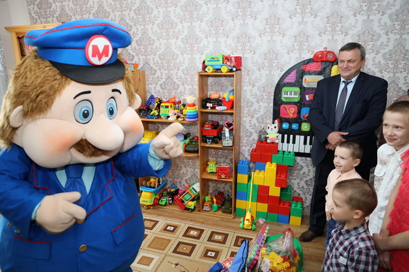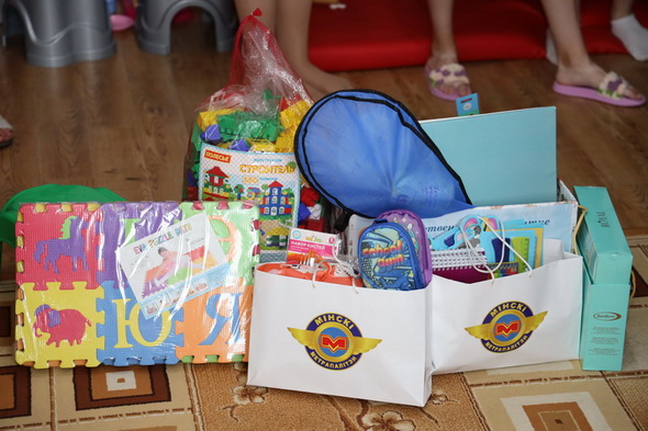 В гости к ребятам пришли: директор метрополитена Владимир Сотников; заместитель директора метрополитена по персоналу, идеологической и социальной работе Юрий Федоренко, председатель первичной организации БСЖ метрополитена Татьяна Глуздакова; специалисты сектора по идеологической и социальной работе предприятия Татьяна Хайкина и Виктор Михалюк. Они принесли с собой подарки – школьные принадлежности, различные развивающие игры и спортивные предметы. Их приобрели за собственный счет работники различных структурных подразделений подземки.