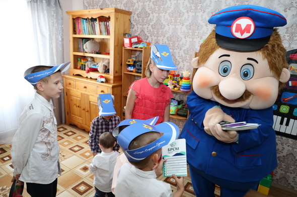 Также в гости к мальчишкам и девчонкам заглянул дружелюбный Метрович. В роли этого замечательного анимационного персонажа в этот раз выступил электромеханик службы сигнализации и связи Роман Климов. Веселые игры и увлекательные конкурсы очень понравились ребятам. Они с удовольствием получали из рук Метровича подарки и фирменные метрополитеновские кепки.