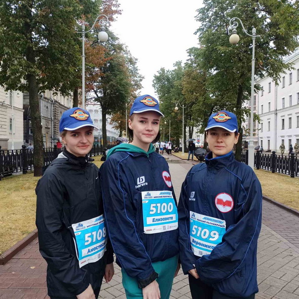 На старт забега длиною в 5 тысяч метров вышли: Анастасия Третьякова (инспектор службы безопасности); Вероника Михнюк (ведущий инженер технического отдела администрации); Елизавета Смотрицкая (дежурный поста централизации метрополитена службы движения); Алексей Пестрак (электромеханик электромеханической службы); Дмитрий Холод (оператор дефектоскопной тележки службы пути и тоннельных сооружений); Максим Петров (машинист электропоезда электродепо «Могилевское») и Роман Амозов (электромеханик службы сигнализации и связи).