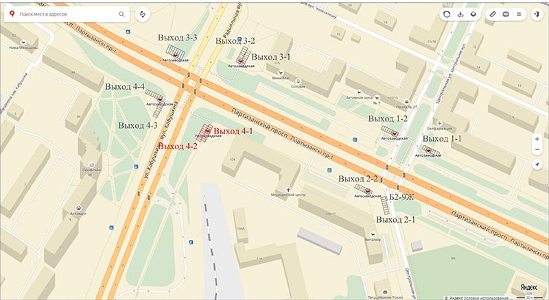 В период с 4 по 15 июля 2022 года будут частично (наполовину) закрыты выходы №4-1 и №4-2 станции «Автозаводская».