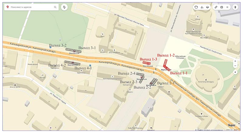 В период с 4 по 29 июля 2022 года будут частично (наполовину) закрыты выходы №1-1, №1-2 и №1-3 станции «Фрунзенская».
