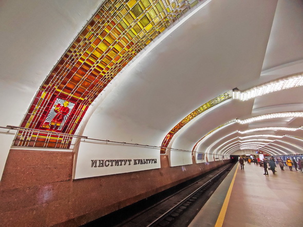 Станция «Институт культуры» была открыта 29 июня 1984 года. Ее архитекторами выступили В.Ивличев, Е.Леонович, В.Очайкин и К.Энштейн, а оформляли станцию художники В.Чайка и С.Котович.
