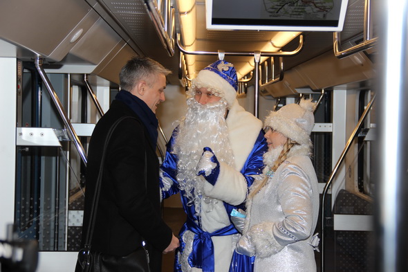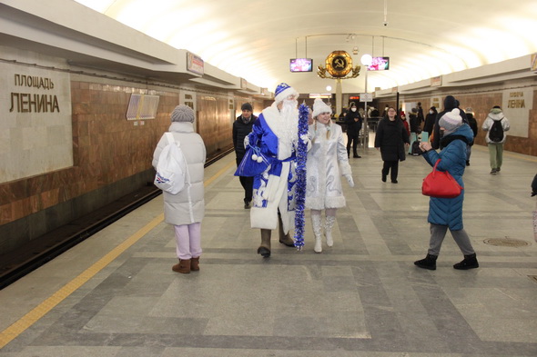 В это время Дед Мороз и Снегурочка не скучали. Они развлекали пассажиров, загадывали загадки детям и взрослым, угощали их сладкими подарками, фотографировались с желающими. Затем сказочные персонажи сами превратились в пассажиров и начали увлекательное путешествие по подземке. Действие развернулось в вестибюлях, на платформах станций и внутри составов.