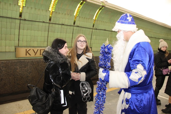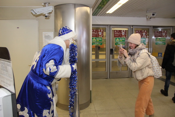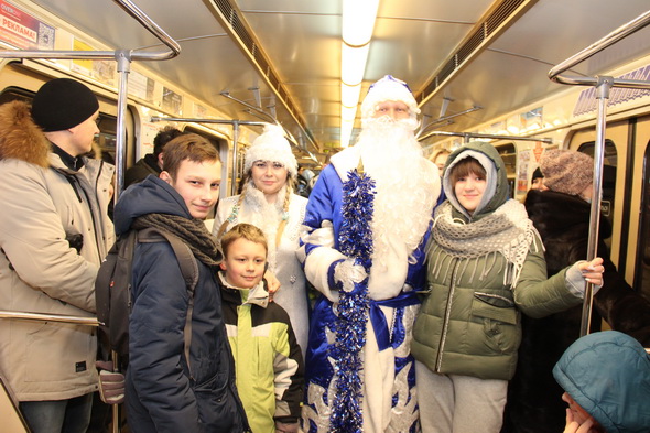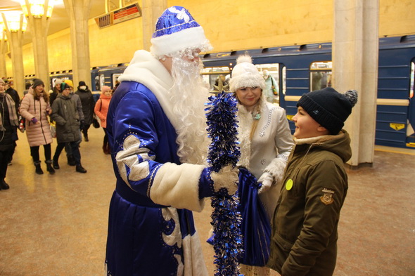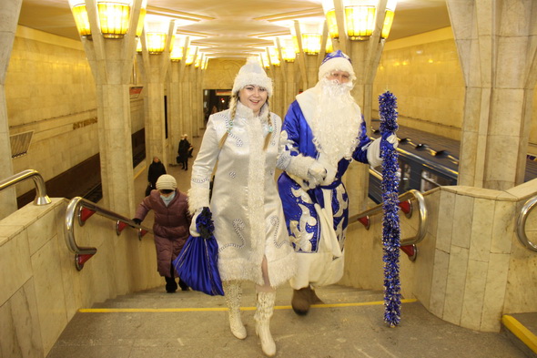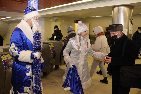 Жители и гости столицы охотно принимали поздравления с новым годом и Рождеством от сказочных персонажей, живо откликались на добрые шутки. Наверняка, такой предновогодний променад в подземке поднял настроение многим пассажирам и сделал поездку более позитивной.