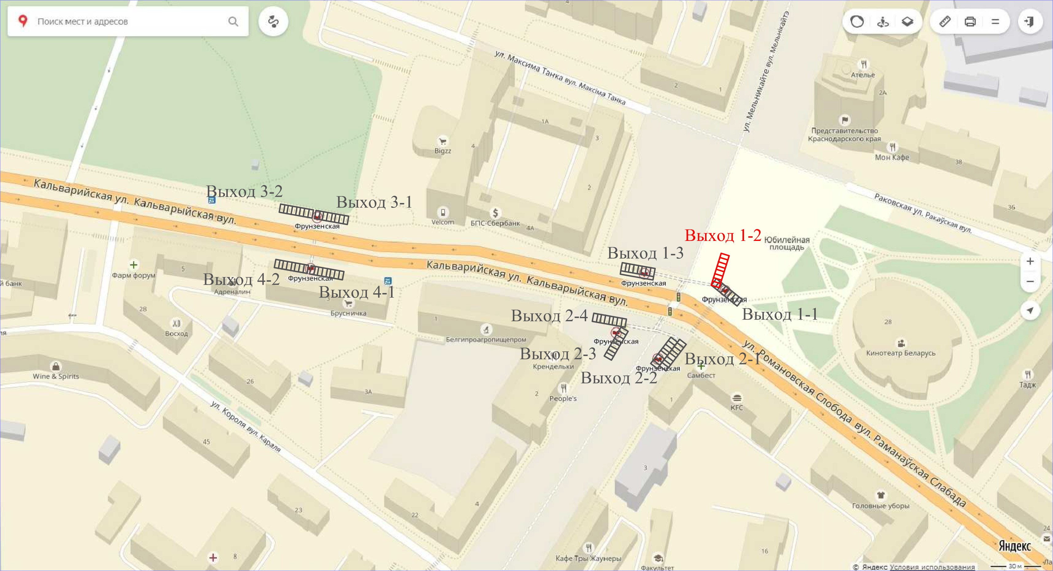 В связи с проведением ремонтных работ, в период с 17 мая по 1 июня 2021 года будет полностью закрыт выход №1-2 станции «Фрунзенская».