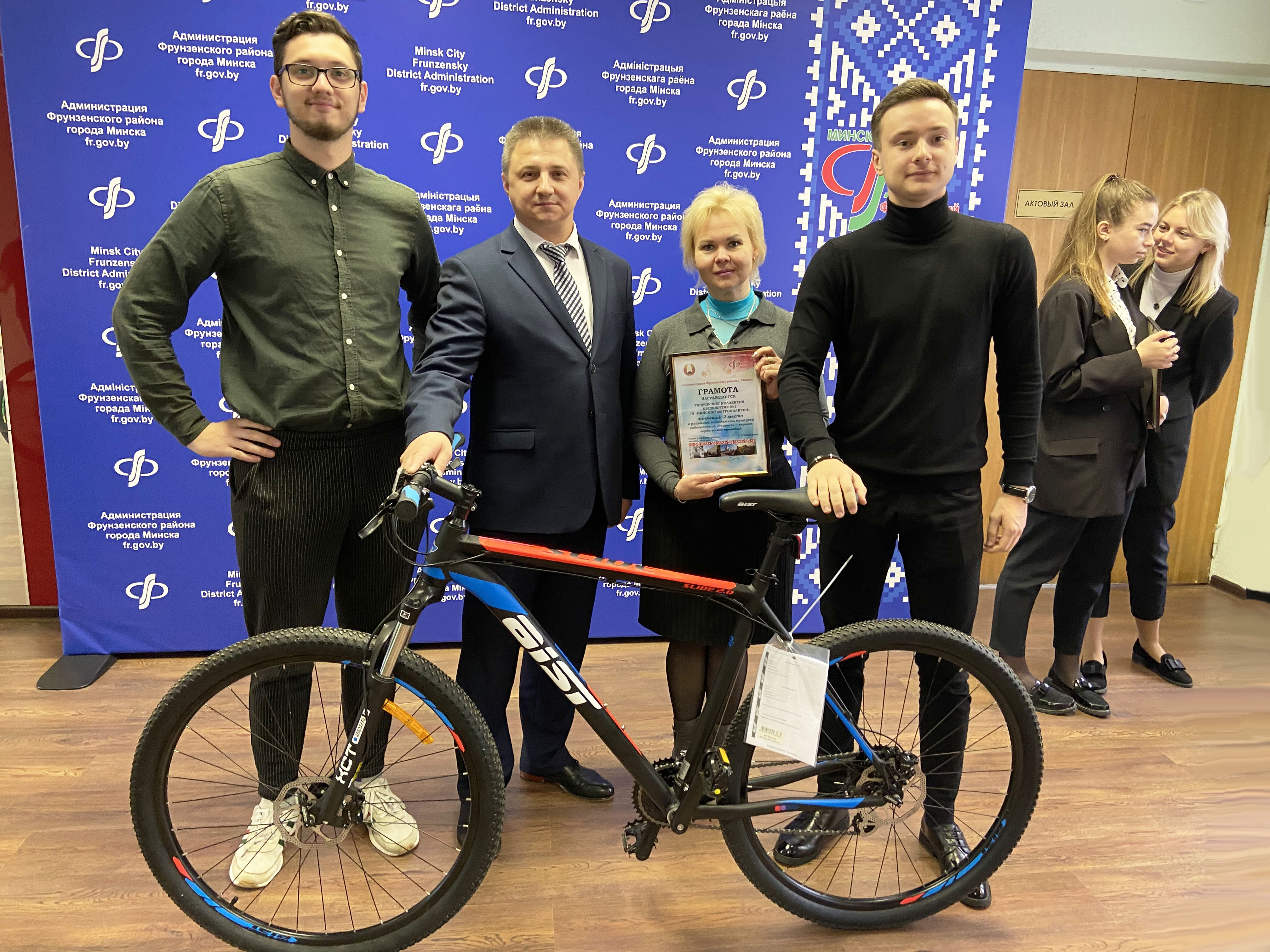 Именно поэтому администрация Фрунзенского района решила провести молодежный конкурс видеороликов. По его итогам молодые таланты из общежития №1 метрополитена заняли второе место, получили грамоту от главы администрации Фрунзенского района Сергея Шкруднева, а также горный велосипед в подарок.