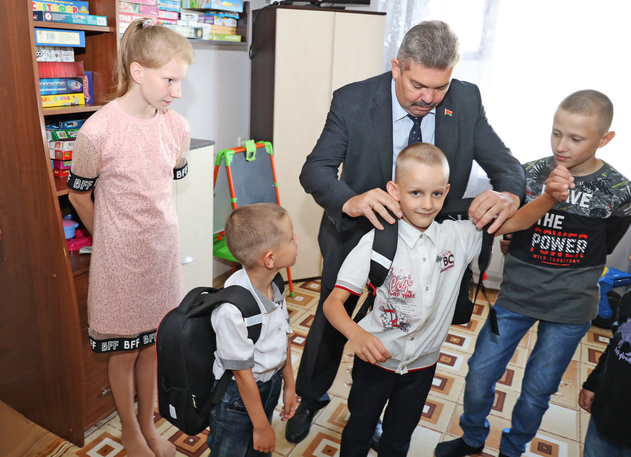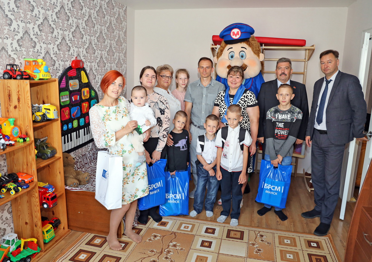 Семья Толкач сегодня воспитывает 7 детей и, конечно же, не так просто всех их подготовить к новому учебному году. Поэтому представители первичных организаций Белорусского союза женщин (БСЖ) и БРСМ предприятия, вместе с руководством Минского метрополитена решили оказать помощь этому детскому дому.