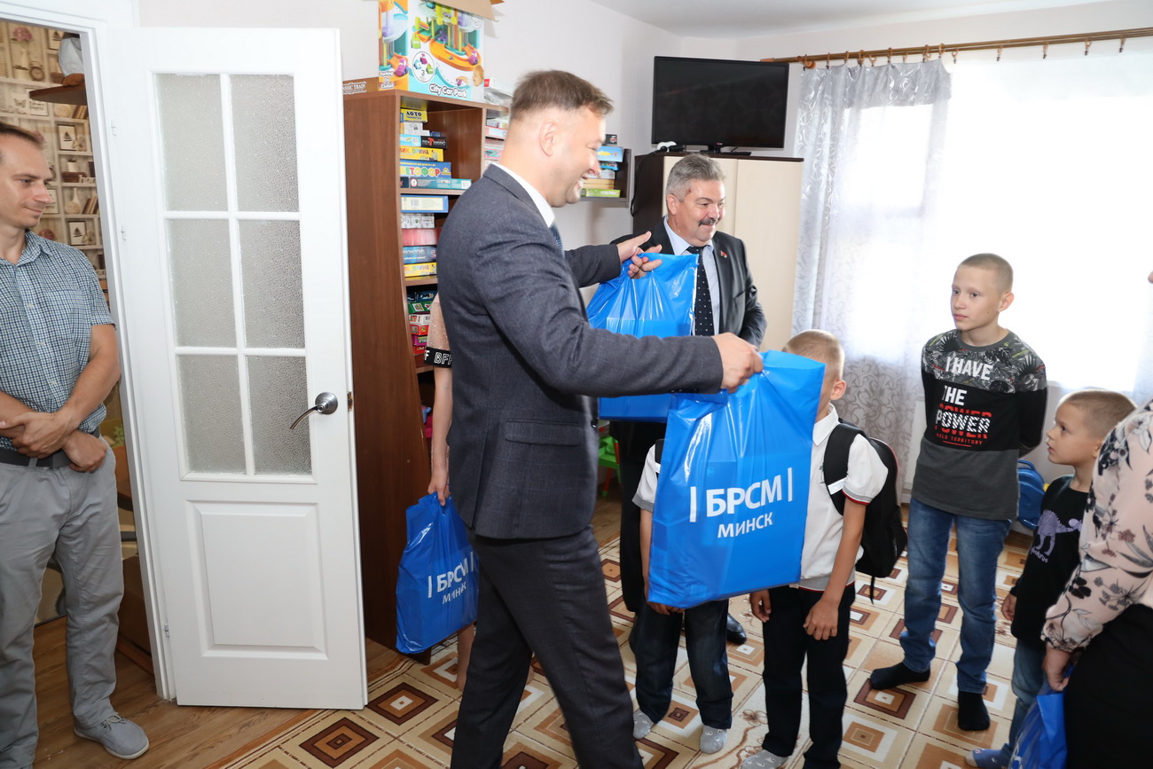 В гости к ребятам пришли: заместитель директора метрополитена по персоналу, идеологической и социальной работе Юрий Федоренко, заместитель директора по экономике Ирина Розум, председатель первичной организации БСЖ метрополитена Татьяна Глуздакова, а также представители сектора по идеологической и социальной работе предприятия Сергей Артеменко и Виктор Михалюк (руководит первичкой БРСМ подземки). Они принесли с собой подарки – школьные принадлежности и различные развивающие игры. Их приобрели за собственный счет сотрудники различных структурных подразделений подземки.
