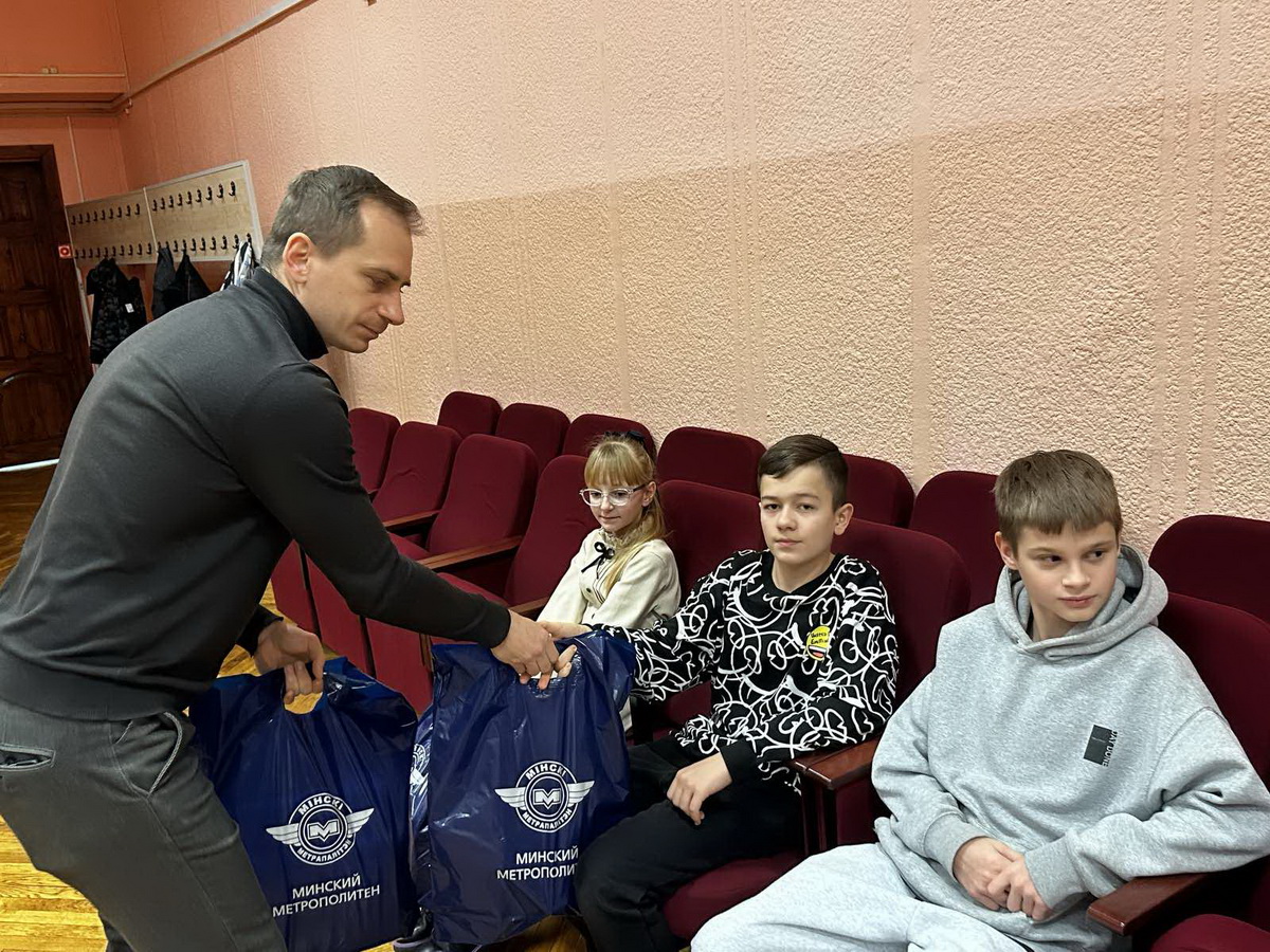 В ходе встречи отличников подшефной школы поздравил с новогодними и рождественскими праздниками начальник сектора по идеологической и социальной работе администрации метрополитена Сергей Артёменко. Учащимся были вручены подарки, а также красочные информационные листовки с правилами безопасного поведения в метрополитене.