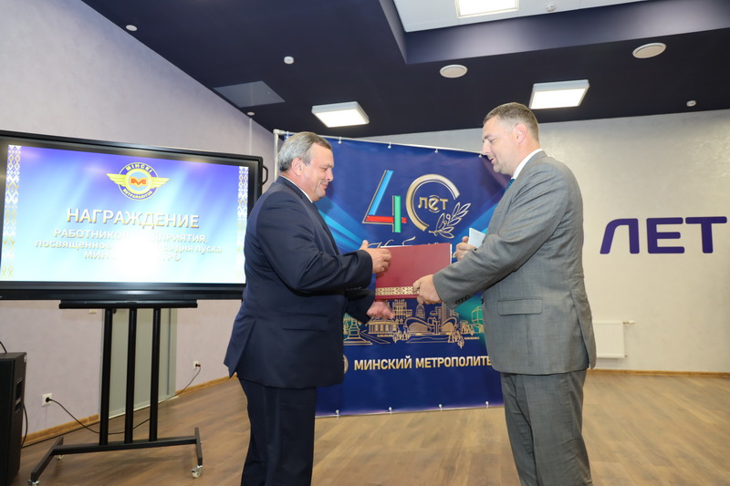 2 июля в Минском метрополитене состоялось награждение лучших работников предприятия в связи с 40-летием пуска минского метро. В этой торжественной церемонии приняло участие все руководство метрополитена во главе с директором Владимиром Сотниковым.