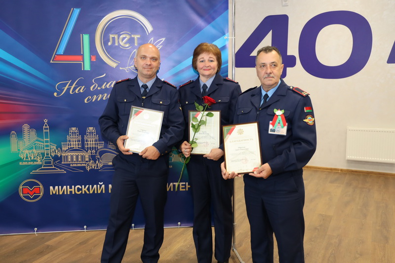 Поздравить коллектив предприятия, и его наиболее отличившихся сотрудников, пришли представители Администрации Московского района Минска, вышестоящих профсоюзных организаций, ГУВД и МЧС. Целый ряд работников метрополитена были награждены Благодарностями, Почетными грамотами и различными знаками.