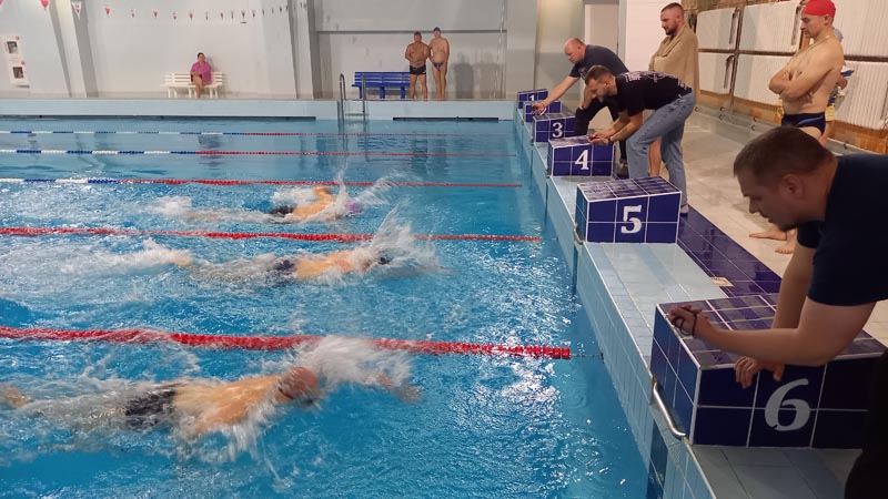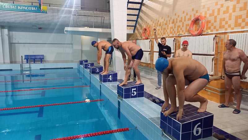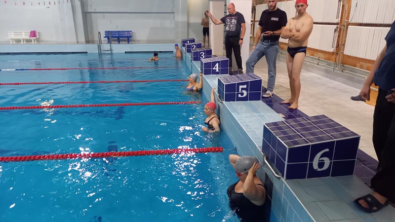 Всем участникам соревнований необходимо было проплыть 50 метров вольным стилем на время.
