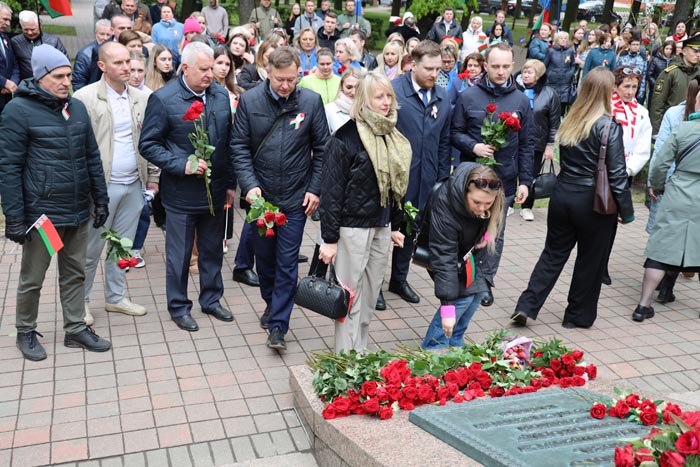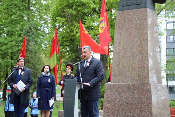 7 мая в сквере имени Жукова в Минске прошел митинг-реквием, который собрал представителей дипломатического корпуса стран СНГ и трудовых коллективов Московского района столицы. Участие в этом мероприятии, приуроченном к 80-летию Победы советского народа в Великой Отечественной войне, приняла делегация Минского метрополитена, которую возглавил заместитель директора предприятия Юрий Федоренко.