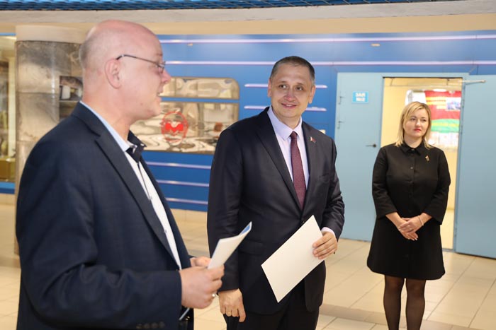 Сегодня в метрополитене прошло очередное мероприятие, посвященное Дню народного единства. В этот день на экспозицию по истории Минского метрополитена (которая расположена на станции метро «Могилевская») были приглашены особые гости – учащиеся подшефной школы № 165 во главе с директором этого учебного учреждения Наталией Зелковской. Участие в акции принял директор метрополитена Алексей Шилов и начальник организационно-кадровой службы предприятия Дмитрий Юрцевич.