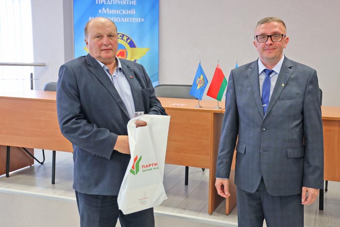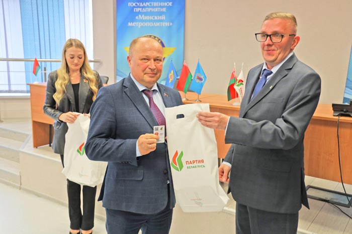 В завершение встречи были вручены членские билеты Белорусской партии «Белая Русь» руководителям и заместителям структурных подразделений: