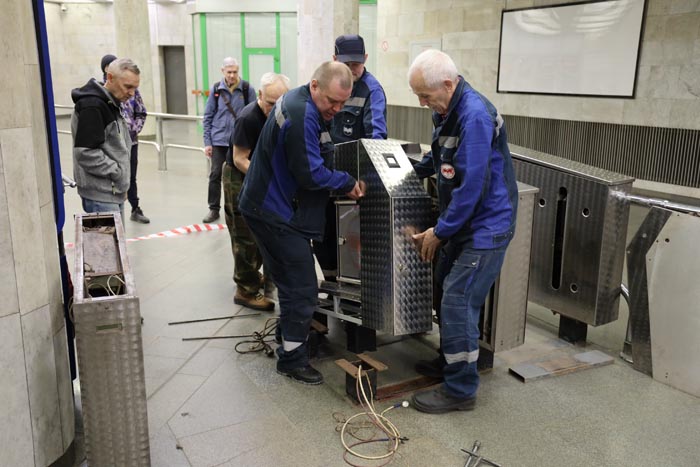Ночью на станции метро «Площадь Ленина» был смонтирован экспериментальный турникет