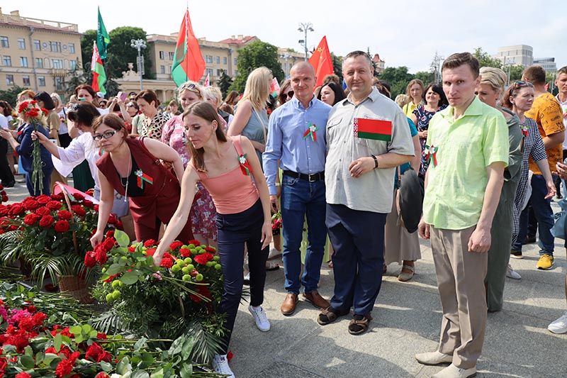 Вечером сотрудники метрополитена побывали на праздничном концерте у стелы «Минск – горад-герой», вместе со всеми зрителями спели гимн Республики Беларусь и полюбовались красочным салютом.