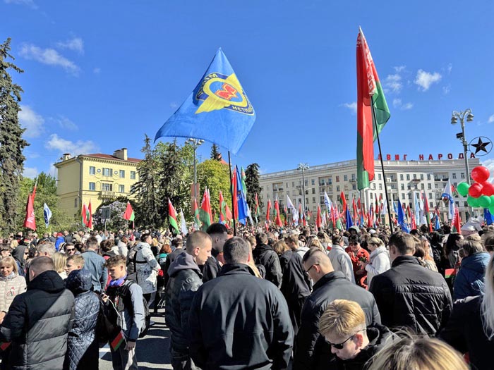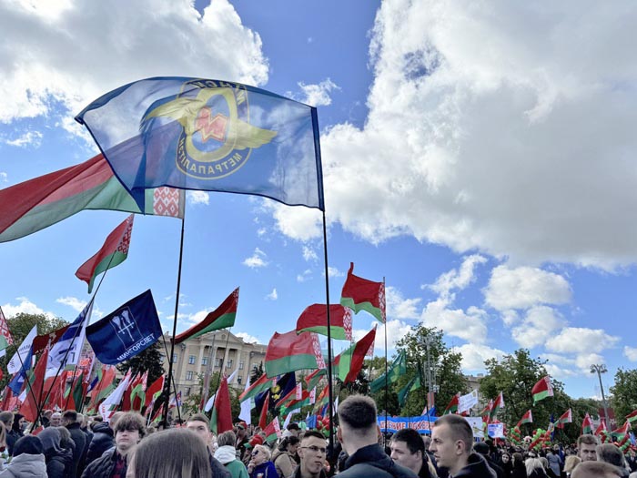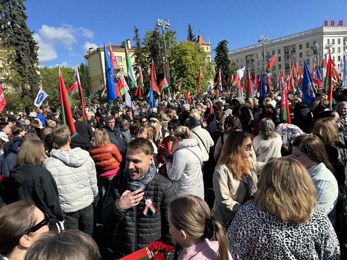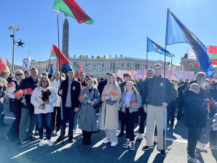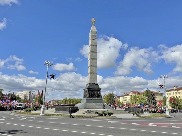 Утром делегация метрополитеновцев влилась в ряды церемонии народного возложения цветов в Минске к монументу Победы на Площади Победы в белорусской столице. Тысячи людей отдали дань памяти героям Великой Отечественной войны.