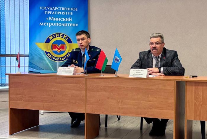 В электродепо «Московское» перед работниками подземки выступил врач-инфекционист учреждения здравоохранения «25-я центральная районная поликлиника Московского района г. Минска» Владислав Абушенко. Он раскрыл актуальные темы: «Практические навыки оказания первой медицинской помощи», «Профилактика инфекционных заболеваний».