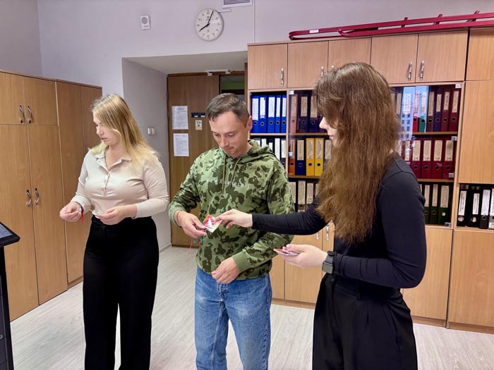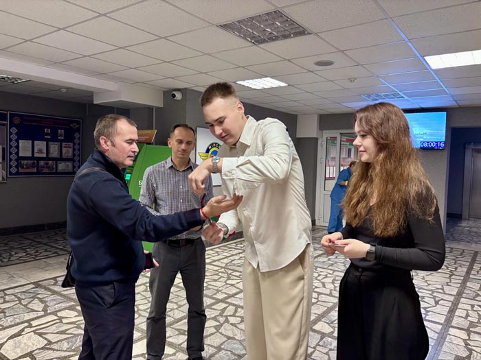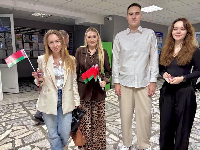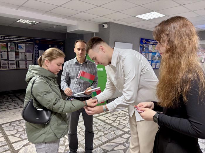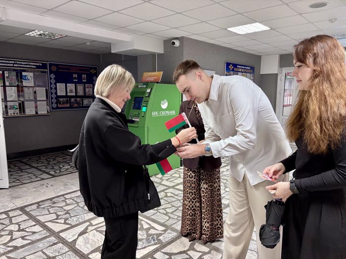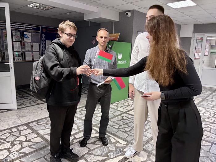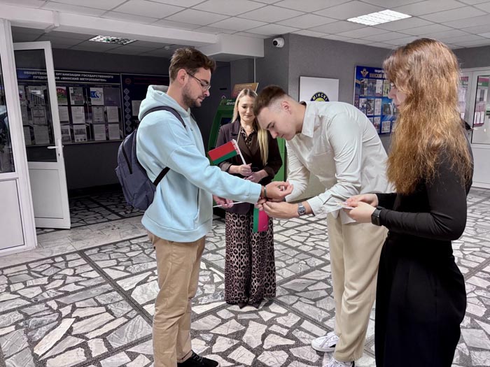 Активисты первичной организации ОО «БРСМ» Минского метрополитена встречали сотрудников своего предприятия у входа, чтобы поздравить каждого с Днем народного единства, вручить поздравительную открытку и символическую красно-зеленую ленту, которая ассоциируется с государственной символикой нашей страны.