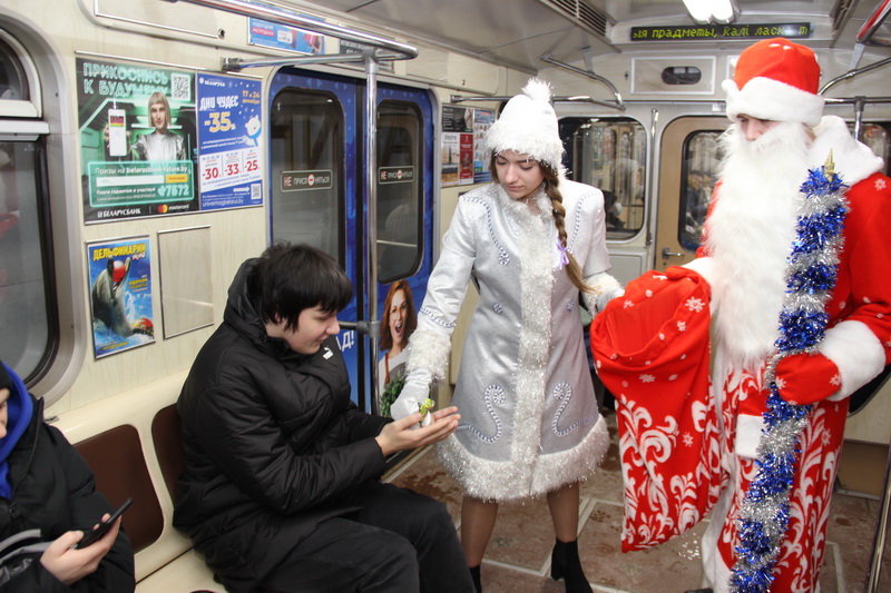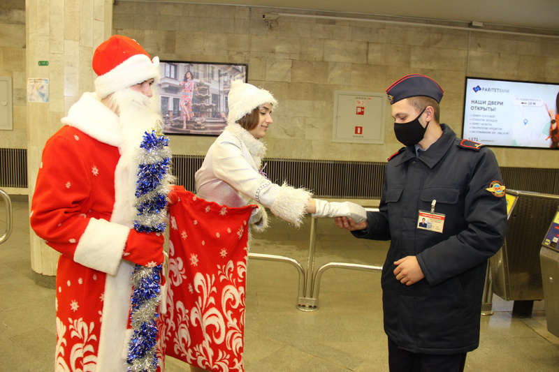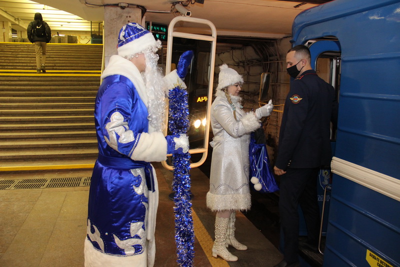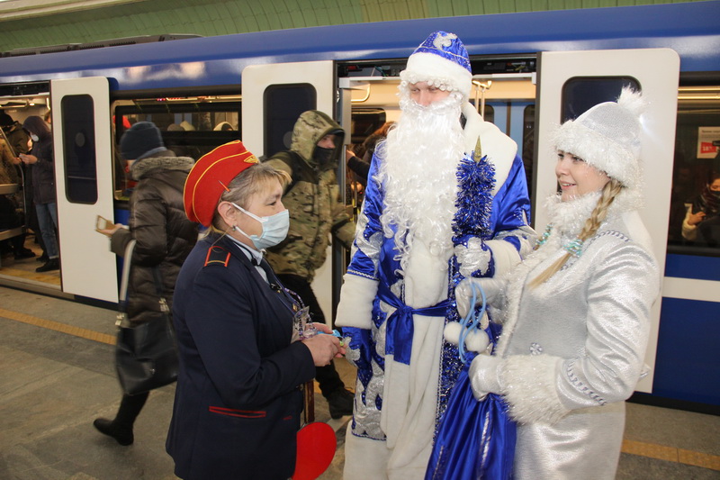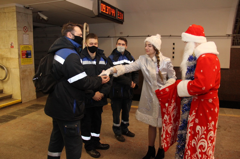 —Поздравление работников метрополитена Дедом Морозом
